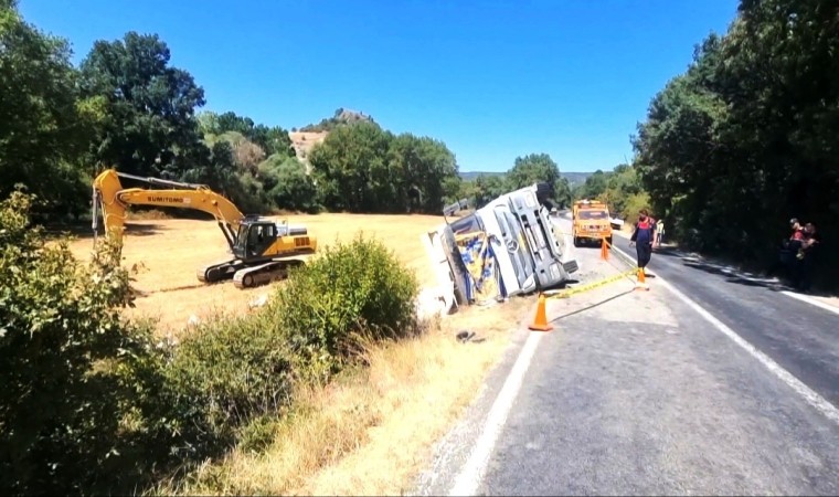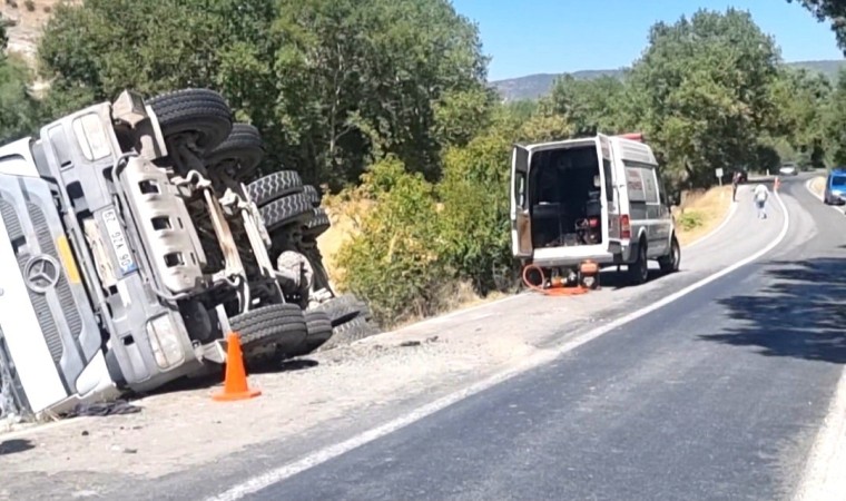 Kütahya’da Domaniç-Tavşanlı karayolunda yol yapım şirketine ait taş yüklü hafriyat kamyonunun devrilmesi sonucu meydana gelen kazada kamyon sürücüsü hayatını kaybetti.