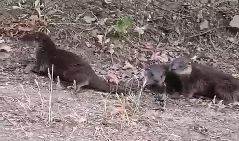 Kütahya’nın Domaniç ilçesinde nesli tükenmekte olan su samurları bir vatandaş tarafından cep telefonuyla görüntülendi.