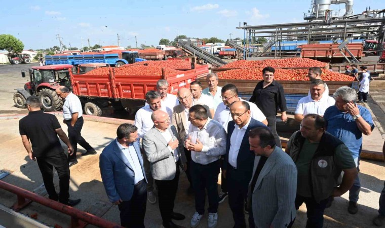 Ticaret Bakanlığı’nın desteğinin hem sahada üretim yapan, alım yapan ve ulusal manada da bu işin ihracatını yapan fabrikalara ciddi bir moral motivasyon olduğunu kaydeden Davut Gürkan, " Bugün de bu dolaşmış olduğumuz tesis neredeyse bu ovada yetişmiş olan 1 milyon 500 bin ton üretimin neredeyse 400 bin ton civarında alımını yapıyor. Çok şükür onları da yerlerinde gördük. Her gün neredeyse 4 bin tondan aşağı olmamak üzere 5 bin ton civarında alım yapıyorlar. Çiftçimizi de bu konularda rahatlatmaya çalışıyorlar. Fabrikalar Ticaret Bakanlığımızın vermiş olduğu destekler doğrultusunda alımlarla ilgili destek verirlerse önümüzdeki sürecin her iki tarafın memnuniyet içerisinde düzeltilebileceğini düşünüyorum. İnşallah bu berekete ticari kazançlarında da olmasını bekliyorum. Bugün itibariyle Ticaret Bakanlığı’nın, Tarım ve Orman Bakanlığı’yla beraber istişareleri sonucu almış olduğu bir karar doğrultusunda belirlenmiş fiyat üzerinde alım yapan üreticilere özel bir destek verilecek. Bu desteğin de üreticilerimize büyük manada bir katkı sağlayacak ve bu hem rekolte fazlası dediğimiz hem de son dönemdeki üretimin ciddi manada fayda sağlayacağını üreticilerine de güzel bir katkı sağlayacak. Hem bu konuda üretim yapan özellikle de ihracat yapan fabrikalarımız daha güçlü daha kuvvetli bir alım yapacaklar. İnşallah üreticilerimizin mahsulleri yerde kalmayıp Ticaret Bakanlığı’nın yapmış olduğu bu desteğin ciddi katkı sağlayacağını düşünüyorum" şeklinde konuştu.