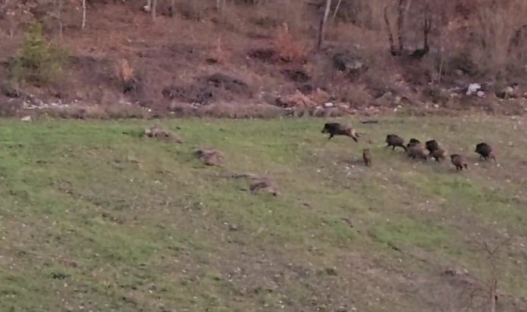 Kütahya’nın Tavşanlı ilçesi Emirler köyü yakınlarında tarlaya giren yaban domuzu sürüsü, Mustafa Fatih Irak tarafından cep telefonu kamerası ile görüntülendi. Buğday akili tarlada yiyecek ararken görüntülenen, sayısı 9’u bulan domuz sürüsü, bir süre sonra gözden kayboldu.