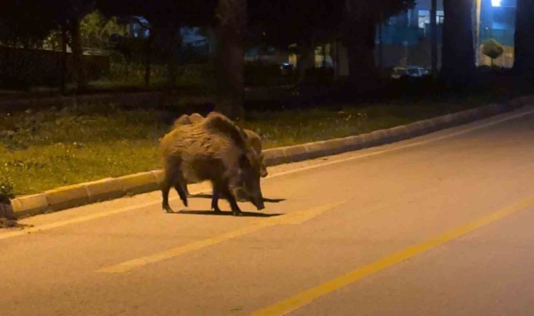 Bodrum’un Konacık Mahallesi’nde caddeye kadar inen domuzlar kimseye aldırış etmeden yiyecek aradı. Ormanlık alandan şehre inen domuz sürüsü vatandaşalar tarafından cep telefonuyla çekildi. Alparslan Türkeş Bulvarı’na kadar gelen domuz sürüsü sitelerin bulunduğu bölgelere giderek yiyecek aradı. Domuzlar daha sonra ormanlık alana girerek gözlerden kayboldu.