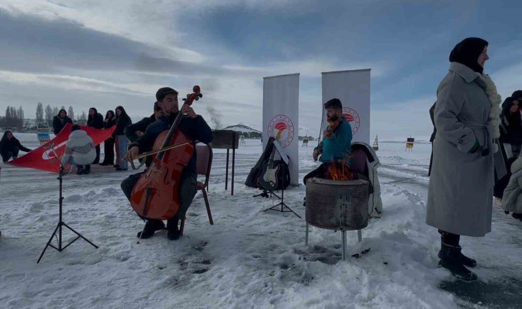 Ardahan İl Tarım ve Orman Müdürlüğü tarafından yüzeyi buzla kaplanan Çıldır Gölü üzerinde "14. Tarım, Orman ve İnsan" adlı fotoğraf sergisi açıldı.