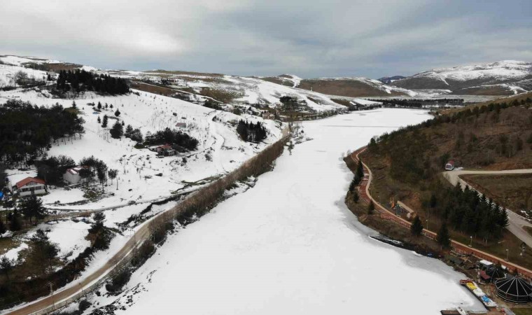 Tokat-Ordu sınırında yer alan Perşembe Yaylası’ndaki yapay gölet, soğuk hava şartları nedeniyle yüzeyini tamamen buzla kapladı. Yaz aylarında yeşilin tüm tonlarını barındıran gölet, kışın ise bembeyaz bir örtüyle doğaseverleri kendine hayran bırakıyor. Son günlerde etkili olan soğuk hava, göletin yüzeyinin tamamen donmasına neden oldu. Buz tutan göletin üzerine yürüyerek fotoğraf çektiren vatandaşlar, bu nadir doğal olayı ölümsüzleştirmek için bir araya geldi. Doğaseverler kışın ortasında bu manzaranın keyfini çıkararak, doğanın sunduğu benzersiz güzellikleri izledi. Yazın sakinliğiyle yeşilin bin bir tonuna ev sahipliği yapan gölet, kışın ise bembeyaz örtüsüyle farklı bir güzellik sunuyor. Her mevsim farklı bir atmosfer oluşturan Perşembe Yaylası, özellikle kış aylarında göletin üzerindeki buz tabakasıyla eşsiz bir görsel sunuyor.