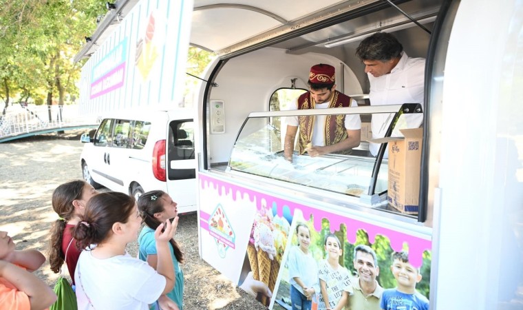 Kartepe Belediye Başkanı Mustafa Kocaman çocuklara dondurma ikram etti.