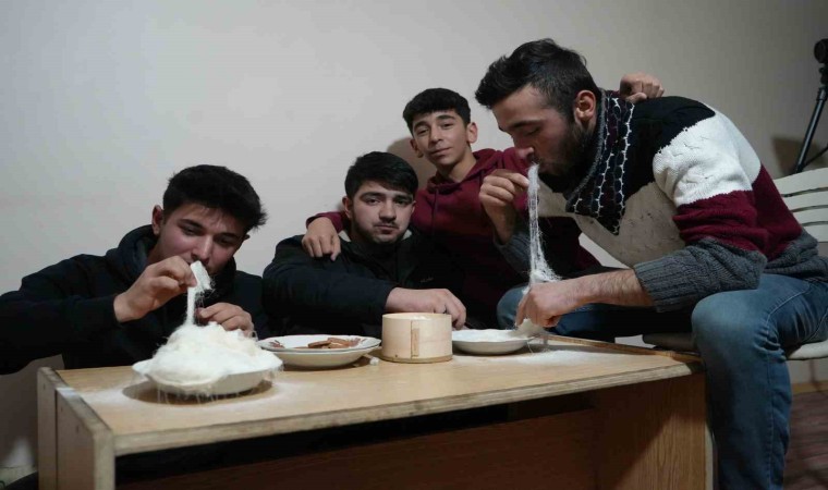 Kışın köy odalarında toplanarak, tel helvası çekme geleneğini yaşattıklarını belirten köy sakinlerinden Selami Alak, "Kışın köy odalarında toplanıyoruz, tel helvası çekiyoruz. Yemesi bana, yapması komşulara ait. Yemeyi çok iyi yapıyorum. Kışın arkadaşlarla birlikte tel helvası çekiyoruz, patates közlüyoruz, börek yapıyoruz. Kışı güzel sohbetle, muhabbetle bir şekilde geçiriyoruz" diyerek konuştu.