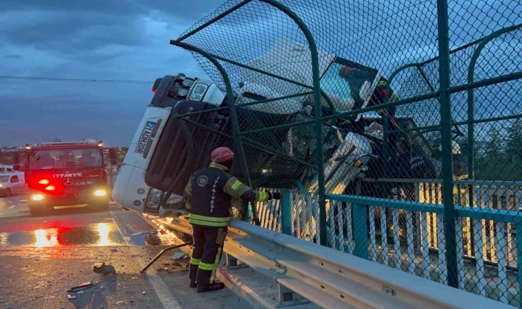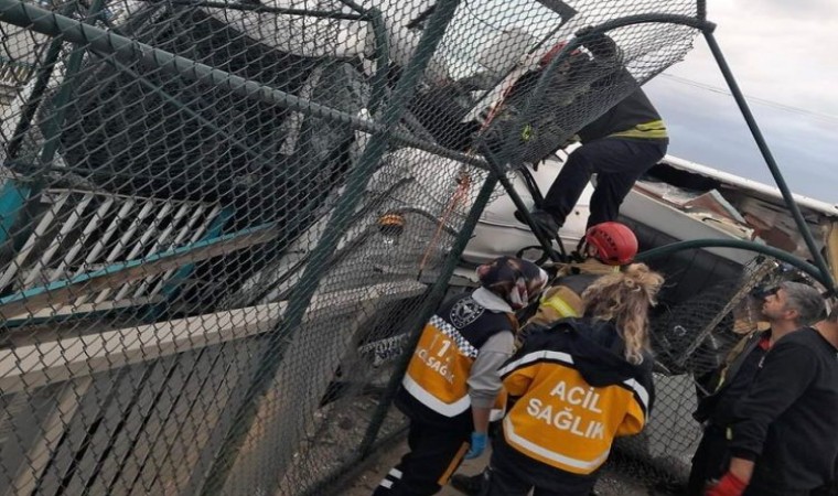 Kaza, Şekerpınar Mahallesi Turgut Özal Caddesi’nde bulunan köprüde meydana geldi. Edinilen bilgiye göre, sürücüsünün direksiyon hakimiyetini kaybettiği 41 ADH 208 plakalı dondurulmuş tavuk yüklü tır, virajı alamayınca aydınlatma direğine çarparak devrildi. Tırın çarptığı aydınlatma direği ise Ahmet Ö. idaresindeki 34 UV 5775 plakalı otomobilin üzerine devrildi. Kazayı gören vatandaşlar 112 Acil Çağrı Merkezine ihbarda bulundu. İhbar üzerine olay yerine sağlık, itfaiye ve polis ekipleri sevk edildi. Kısa sürede olay yerine gelen itfaiye ekipleri, tırda sıkışan sürücü Enis A.’yı kurtarmak için çalışma başlattı. Ekiplerin yaklaşık 2 saat süren çalışmasının ardından sürücü araçtan çıkarılarak, sağlık ekiplerine teslim edildi. Yaralı, ilk müdahalesinin ardından hastaneye kaldırıldı. Direğin üstüne devrildiği otomobilde ise hasar oluştu.