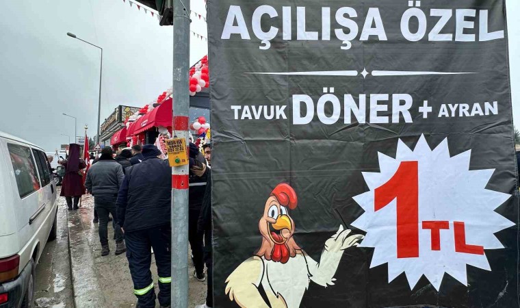 Ankara’nın Yenimahalle ilçesindeki İvedik Organize Sanayi Bölgesi’nde açılışa özel tavuk döner ve ayranın fiyatını 1 lira yaptı. Kampanyayı duyan vatandaşlar ise açılış saatinden dakikalar önce restoran önünde yerini aldı. Yoğunluğun yaşandığı restoran önünde metrelerce kuyruk oluştu. Kimi vatandaşlar birden fazla döner almak istediklerini söylerken kimileri ise sanayide çalıştığını ve durumu değerlendirmek istediklerini kaydetti.