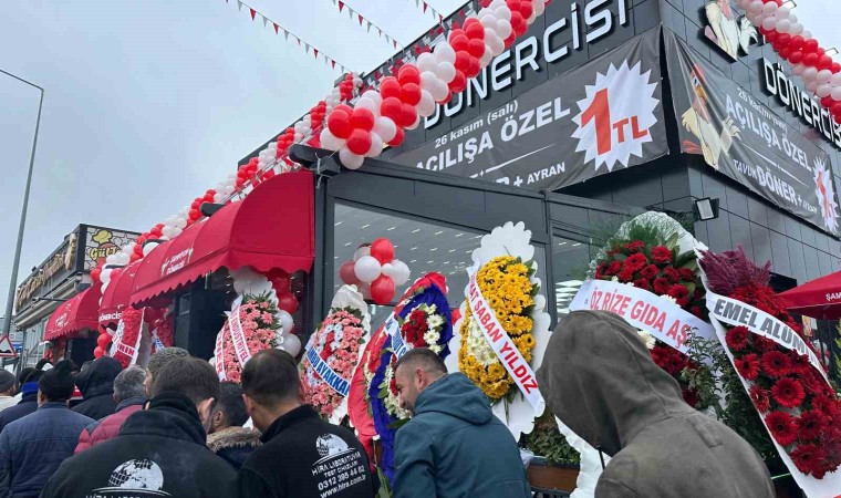 Ankara’da bir işletme açılışa özel döner ve ayranı 1 liradan satışa sundu. 1 ton etin müşterilere hazırlandığı açılışta dönerler 3 saat içerisinde tükendi.