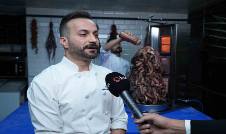 Döneri ile ünlü başkentte deniz ürünleri restoranı işleten iki şef kardeş, ahtapottan döner yaptı.
