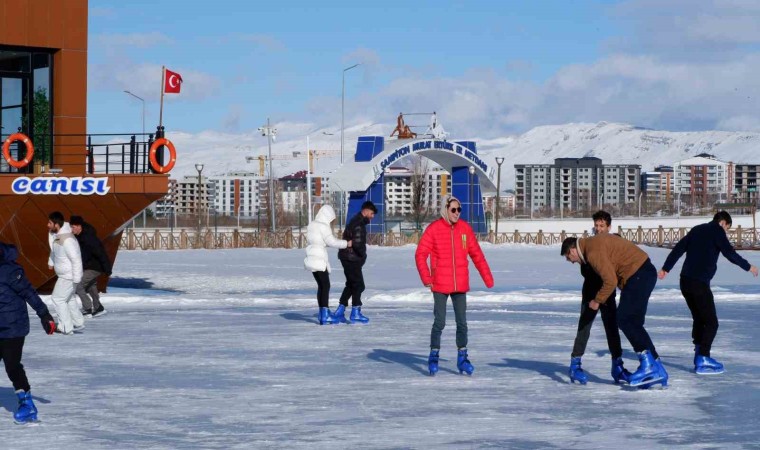 Erzurum Büyükşehir Belediyesi Olimpiyat Parkı’nda yüzeyi yaklaşık 35 santimetre buzla kaplanan havuz, paten tutkunlarının uğrak noktası oldu. Yaz aylarında piknikçilerin ağırlayan mekan kış mevsiminde ise paten öğrenmek isteyenlere imkan sunuyor. Patenle kaymasını bilenlere açık hava ve geniş alanda farklı deneyimler sunduklarını, öğrenmek isteyenlere de ders verildiğini anlatan Antrenör Yusuf Delibaş, “Burası özellikle açık havada çok güzel oluyor. Kış ayı boyunca çalışmalarımız ve eğitimlerimiz sürüyor. Paten tutkunlarını ve bu güzellikleri yaşamak isteyenleri buraya davet ediyoruz” dedi. Buz tutan havuzda patenle açık havada kayanların yanında buz hokeyi antrenmanı yapan sporculara da rastlamak mümkün.