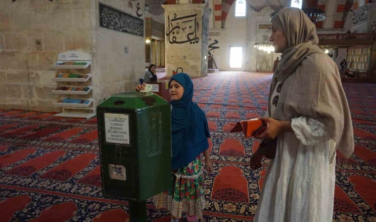Eski payitaht Edirne’deki Eski Camii’de, Müslümanların kutsal mekanı Kabe’den bir parça olan Rükn-ü Yemani (Kabe taşı)nı da görmeye giden Eliz ailesi, hayranlığını gizleyemedi. Cami ziyareti sonrası giriş noktasında bulunan bağış kutusuna bağışta bulunan minik gurbetçi Eliz Bozacı, örnek davranışı ile takdir topladı.