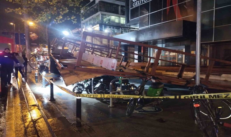 Kadıköy’de kentsel dönüşüme girecek olan binayı güvenlik için çevreleyen panolar fırtına dolayısıyla devrildi. Olayda can kaybı ve yaralanma olmadığı öğrenildi.