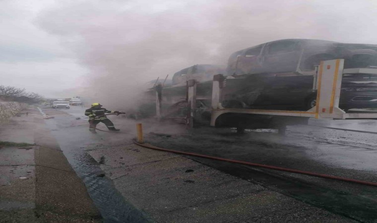 Ekipler uzun uğraşlar neticesinde alevleri söndürdü. Sürücü M.Ç.’nin kendi imkanları ile bir aracı dorseden indirdiği yangında 6 otomobilde maddi hasar oluştu.