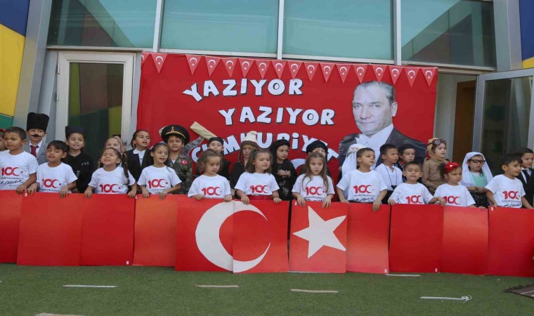 Antalya’nın tek Türkiye’nin ise örnek projesi olan Döşemealtı Belediyesi Ekolojik Kreş’te 29 Ekim Cumhuriyet Bayramı bu yıl her zamankinden çok daha coşkulu kutlandı. Cumhuriyet’in 100’ncü Yılı anısına haftalardır öğretmenleri tarafından hazırlanan kreş öğrencileri 100’ncü yıl armalı ve Atatürk fotoğraflı tişörtler, kırmızı-beyaz Türk bayrakları ile okul bahçesinde etkinlik alanında yerlerini aldı. Saygı duruşu ve istiklal marşı ile başlanan etkinlik renkli görüntülere sahne oldu.