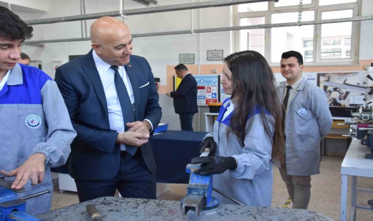 Başkan Alpay ve beraberindeki heyet okulda incelemelerde bulunarak çalışmalar hakkında bilgi aldı. DOSTEK Koleji öğrencileriyle bir araya gelen Başkan Ercan Alpay, mesleki eğitimin ülke kalkınmasındaki öneminden bahsederek; “Kıymetli gençler meslek liselerinde aldığınız eğitimler, kazanımlar gelecekte yaşamın her alanında sizlere büyük avantajlar sunacaktır. Sizlerden ricamız; mesleğinize ve kazanımlarınıza sahip çıkın. Her biriniz okulunuzdan mezun olduktan sonra teknisyen unvanı kazanacaksınız. İyi şartlarda istihdam edilmeniz ve ülkemizin gelişmesinde büyük faydalar sağlamanız gerekmektedir. Okulunuzun sunduğu imkanlar sizleri başarıya götürecektir. Bu kapsamda Denizli’ye böyle bir okul kazandırılmasında emeği geçenlere, Denizli OSB Yönetim Kurulu’na ve sanayicilerimize teşekkür ederiz” dedi.