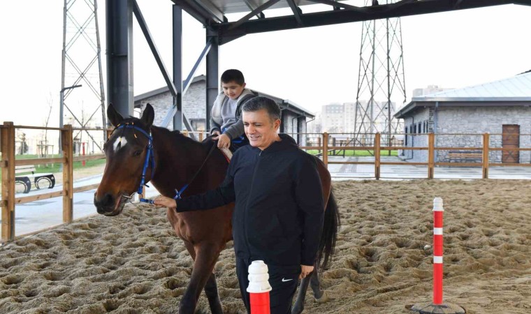 Esenyurt Belediye Başkanı Kemal Deniz Bozkurt’un hayata geçirdiği At Binicilik Tesisi, özel çocuklara umut oluyor. Bu çocuklardan bir tanesi olan down sendromlu Ayaz Efe Teke, 4 aydır tesiste binicilik eğitimi alıyor. 10 yaşındaki Ayaz, hippoterapi (at terapisi) ile hem dikkat becerisini ve kaslarını geliştiriyor hem de hırçınlığından kurtuluyor. Ailesiyle birlikte her gün tesise gelen Ayaz Efe, burada önce binicilik eğitmeniyle atları seviyor ve besliyor, ardından da eğitim alıyor. Ailesi, Ayaz Efe’nin aldığı binicilik eğitimlerinden sonra birçok olumsuz davranışından kurtulduğunu söylüyor.