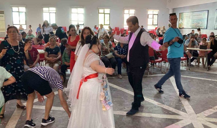 Gelinlik giyme hayali gerçek olan Down sendromlu genç Sibel Bakay, düğün boyunca kardeşi Umut ile dans etti, akrabalarıyla oyunlar oynadı.