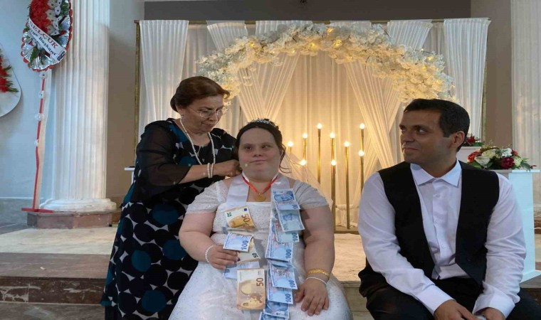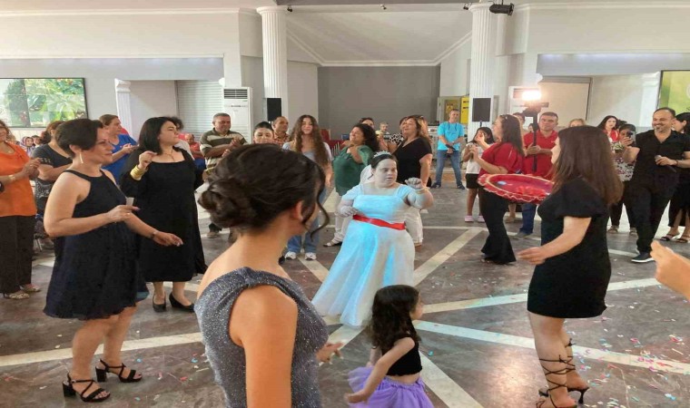 Manisa’nın Sarıgöl ilçesinde Down sendromlu kızının gelinlik hayalini gerçeğe dönüştürmek isteyen anne kızı için düğün organizasyonu yaptı.