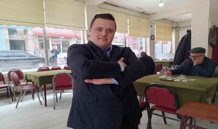 Emek Mahalle muhtar adayı olan 25 yaşındaki down sendromlu Mücahit Kırdaş, her evi ve esnafı dolaşarak oylarına talip olduğunu belirterek yapacağı hizmetleri anlatıyor.