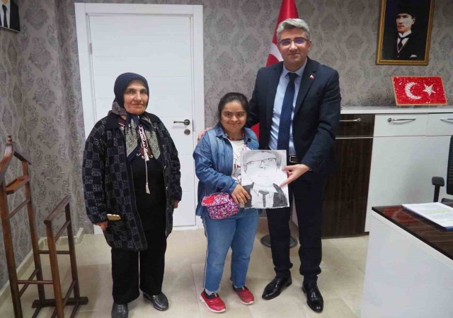 Down sendromu Kısmet Pala karakalem çalışmasını kaymakama hediye etti