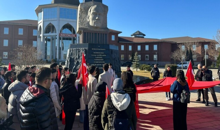 Şehit Kütüphaneleri Topluluğu tarafından düzenlenen etkinlikte İktisadi ve İdari Bilimler Fakültesinin önünde buluşan onlarca öğrenci, ellerindeki Türk bayraklarıyla buradan Rektörlüğe hareket etti. Dumlupınar Anıtı önünde son bulan yürüyüşün arından öğrenciler anıt önüne fotoğrafları konan şehitler için çiçekler bıraktılar.