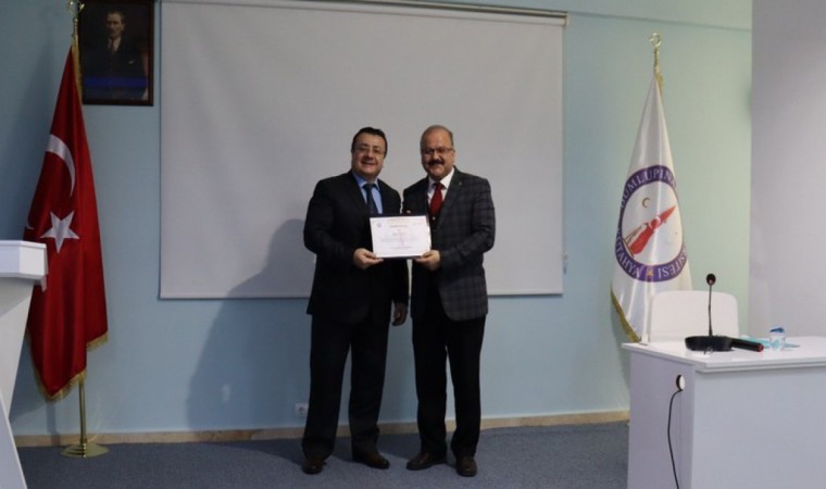 Etkinliğin sonunda Prof. Dr. Cafer Özkul tarafından Ahmet Türkben’e teşekkür belgesi sunuldu.