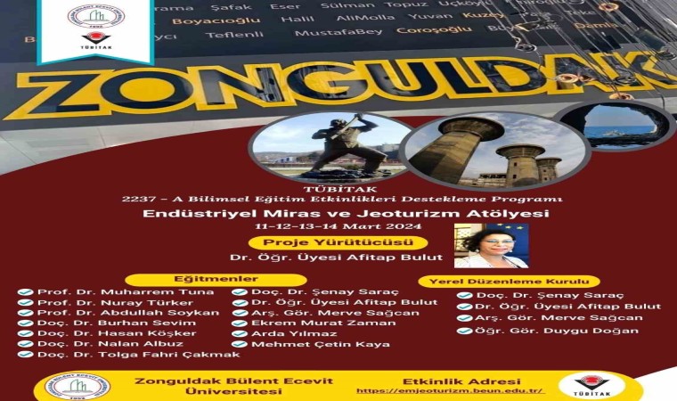 Zonguldak Bülent Ecevit Üniversitesi Devrek MYO Öğretim Üyelerinden Dr. Öğretim Üyesi Afitap Bulut’un yürütücülüğünü üstlendiği "Endüstriyel Miras ve Jeoturizm Atölyesi" başlıklı proje TÜBİTAK-BİDEB 2237-A Bilimsel Eğitim Etkinliklerini Destekleme Programı tarafından destek almaya hak kazandı. Projenin amacı, 11-14 Mart 2024 tarihleri arasında Zonguldak’ta gerçekleştirilecek olan atölye çalışmasıyla birlikte, ZBEÜ öğrencileri ve Türkiye genelindeki diğer üniversitelerin Turizm ve Otel İşletmeciliği ile Turizm Rehberliği programlarından gelen öğrencilere endüstriyel miras turizmi ve jeoturizm konularında teorik ve pratik eğitim imkânı sunmak. Bu eğitimle, döngüsel ekonomi ilkeleri çerçevesinde çevre ve kültürel mirasın korunmasıyla birlikte sürdürülebilir endüstriyel miras turizmi ve jeoturizmin önemini vurgulamak hedefleniyor.