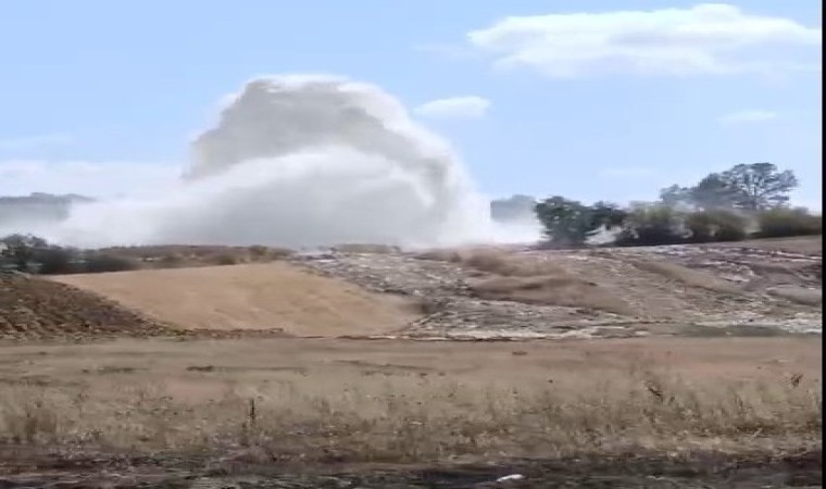 Samsun’un Vezirköprü ilçesinde Devlet Su İşleri’ne (DSİ) ait 2 binlik boru patladı. Patlama sonrası su dağı oluştu.