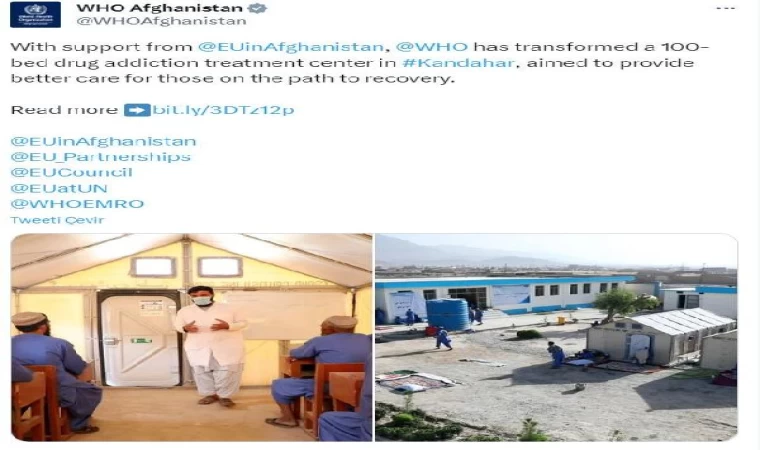 DSÖ Doğu Akdeniz Bölge Ofisi’nden yapılan yazılı açıklamada, DSÖ’nün, Avrupa Birliği'nin (AB) mali desteğiyle Afganistan'ın Kandahar kentindeki 100 yataklı bir uyuşturucu bağımlılığı tedavi merkezini dönüştürdüğü ve yenilenen tesislerin, ihtiyacı olan Afganları iyileşme yolunda desteklemek için daha donanımlı hale getirildiği belirtildi. Yenilenen merkezle, Kandahar ve komşu illerden gelen savunmasız insanlara fiziksel, zihinsel, sosyal, psikolojik ve ekonomik refahlarını geri kazanmaya ve sürdürmeye yardımcı olmaya yönelik kaliteli uyuşturucu tedavi programları sağlanmasının amaçlandığı ifade edildi.