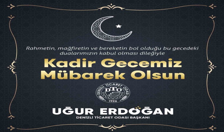 Denizli Ticaret Odası (DTO) Başkanı Uğur Erdoğan Kadir Gecesi için bir mesaj yayınladı. Vatandaşların Kadir Gecesini tebrik eden Erdoğan, “Yüce Yaratan, bize bu mübarek gecede bolca mağfiret ve bereket ihsan etsin. Kadir Gecemiz mübarek olsun" dedi.