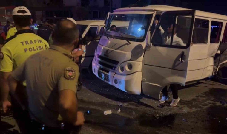 Kaza, dün gece 00.15 sıralarında Antalya’nın Kepez ilçesi Habipler Mahallesi Muammer Aksoy Caddesi ile Adnan Kahveci Caddesi’nin kesişiminde meydana geldi. Düğünden döndükleri öğrenilen Ahmet E. (48) idaresindeki 09 HJ 286 minibüs ile Gökhan G.’nin kullandığı 07 BON 549 Audi marka araç kavşak sisteminde çarpıştı. Çarpışmanın etkisiyle minibüs geldiği istikamete ters dönerken araçta bulunan yolcular ise camlardan yola savruldu.