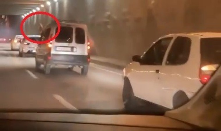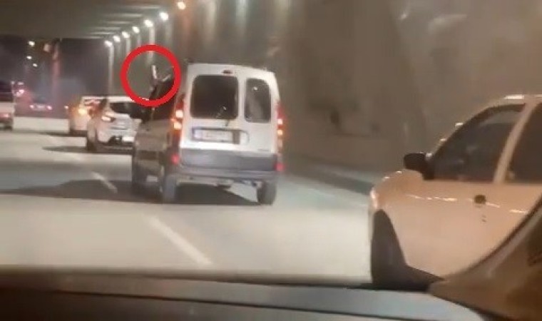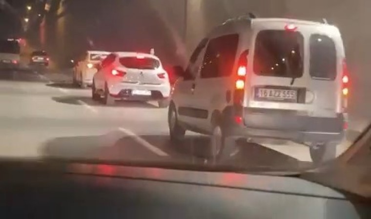 Bursa’da bir düğün konvoyundakiler tehlike saçtı. Tünele giren araçlardan bir anda havaya ateş açılmaya başladı. O anlar bir başka sürücü tarafından kaydedildi.