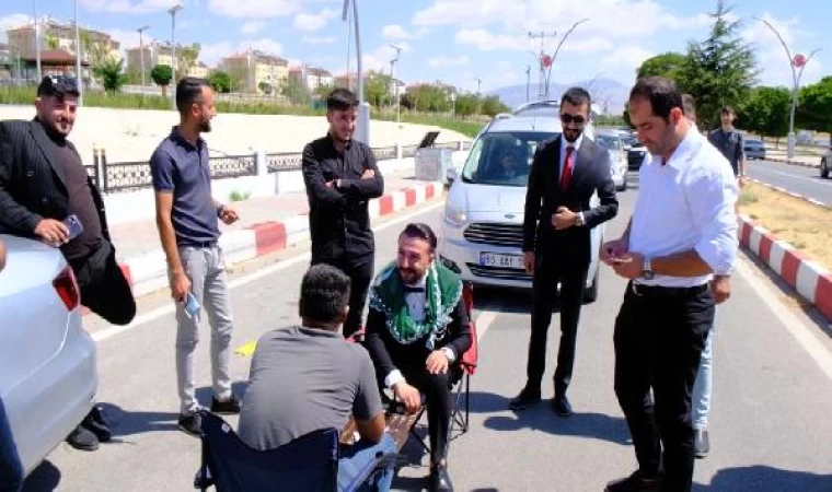 Düğün konvoyunun önünü keserek damatla tavla oynayıp, bahşiş aldılar
