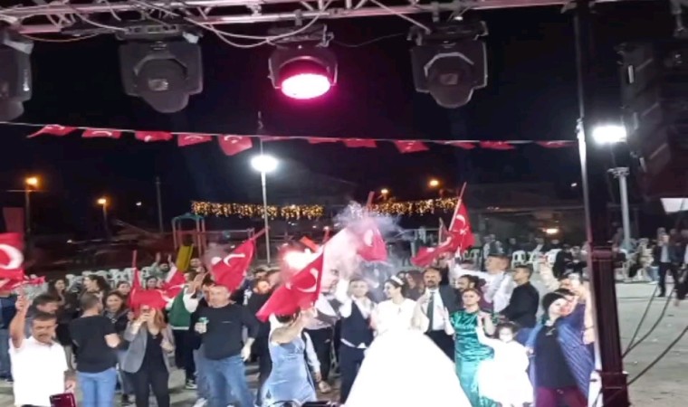 Edirne’nin Havsa ilçesine bağlı Naipyusuf köyünde evlenen Yonca - Doğanay Eren çifti, takı töreni öncesi 100. Yıl Marşı, sarı saçlım mavi gözlüm şarkılarını eşliğinde eğlendi.