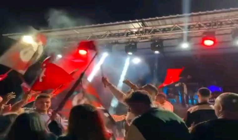 Cumhuriyet’in 100. yılı dolayısıyla havai fişekler ile gökyüzü şenlenirken, bu anlamlı günde bir araya gelen davetliler de Cumhuriyet’in 100. yılını ellerinde bayrakları ile coşkuyla kutladı.