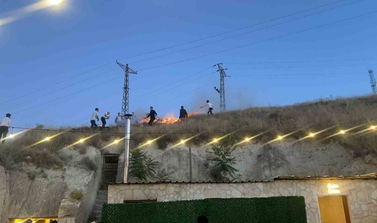 Nevşehir’in Nar beldesinde bir düğünde havaya atılan havai fişekler nedeniyle çevredeki kuru otlar tutuştu. Alevi gören düğün salonu çalışanı kendi imkanlarıyla yangını söndürmeye çalıştı. Alevlerin büyümesiyle düğün salonu çalışanları ve düğüne katılan vatandaşlar yangını büyümeden söndürmeyi başardı.