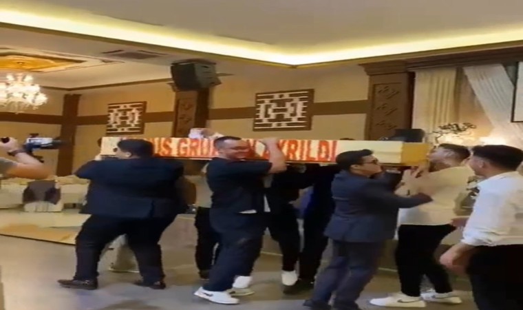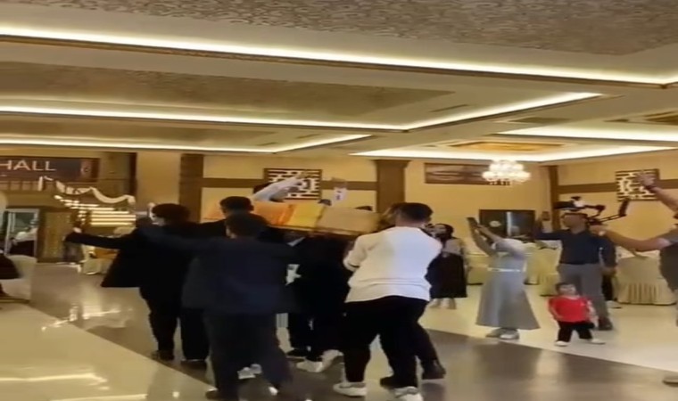 Düzce’de bir düğünde damadın arkadaşları salona tabutla geldi. O anlar sosyal medyada paylaşıldı.