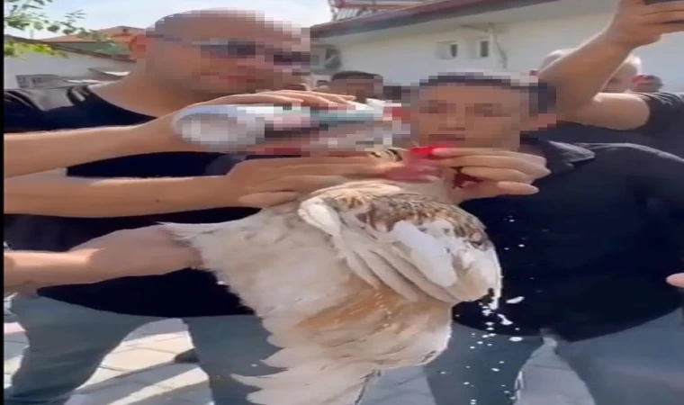 Pamukkale’de bir düğünde horoza içki içirildi. Sosyal medyada paylaşılan görüntüleri izleyenler, jandarmaya ihbarda bulundu. Pamukkale İlçe Jandarma Komutanlığı ekipleri görüntüleri inceleyerek, horozun ağzını açarak içki içiren 5 kişiyi tespit etti. Şüphelilere '5199 Sayılı Hayvanları Koruma Kanununa Muhalefet' suçundan kişi başı 4 bin 554 TL, toplamda 22 bin 770 lira para cezası kesildi. Şüpheliler hakkında ayrıca adli işlem yapılacağı öğrenildi. (DHA)