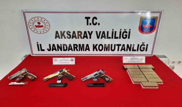 Aksaray’da düğünde onlarca kişinin içerisinde içki masasında havaya ateş açan 3 maganda sivil jandarma ekipleri tarafından ruhsatsız 3 tabanca ve 626 adet mermiyle birlikte suçüstü yakalandı.