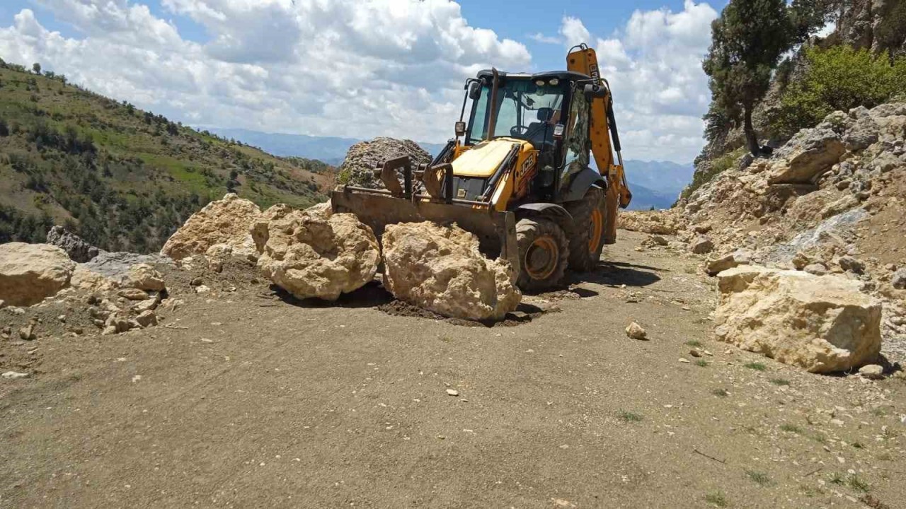 KAHRAMANMARAŞ’TA MEYDANA GELEN DEPREMLER SONRASI DULKADİROĞLU İLÇESİNDE KAYALARLA KAPANAN YOLLAR AÇILIYOR
