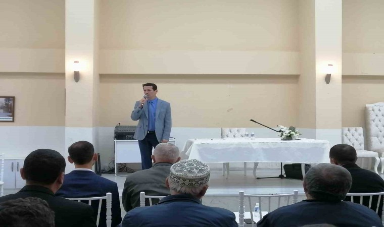 Programın sonunda İlçe Müftüsü M. Emin Olgun, konuşmacı Ersan Özten’e hediye takdim etti.
