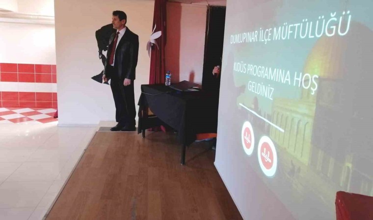 Dumlupınar İlçe Müftülüğü tarafından Hz. Ömer’in mirası, Selahaddin Eyyubi’nin rüyası ve Sultan II. Abdulhamid’in davası olan Kudüs ve Filistin hakkında ilçede eğitim gören ortaokul öğrencilerine yönelik düzenlenen program, Merkez Camii İmam Hatibi Nurullah Yumak’ın Kur’an-ı Kerim tilavetiyle başladı.