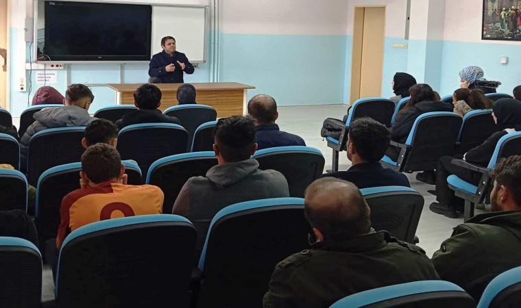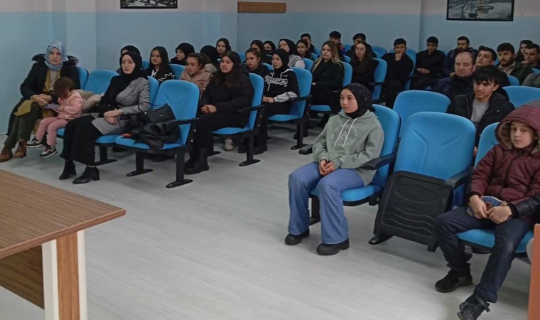 Konferansa Kaymakam Büşra Güllü Özpınar, İlçe Milli Eğitim Müdürü Muhammed Şehirli, öğretmenler ve öğrenciler katıldı.