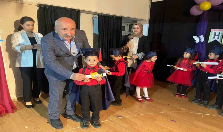 Gazi İlkokulu konferans salonundaki program İstiklal Marşı’nın okunması ve saygı duruşu ile başladı. Programda eğitim öğretim yılında minik öğrencilerin hazırladıkları resim, el sanatları sergisinin açılışı gerçekleştirildi. Öğrencilerin gösterileri büyük topladı. Gösterilerin sonunda minikler mezuniyet keplerini havaya fırlattı. Programda öğrencilere ödüllerini veren Kaymakam Büşra Güllü Özpınar, sergi ve gösteride emeği geçen herkese teşekkür etti.