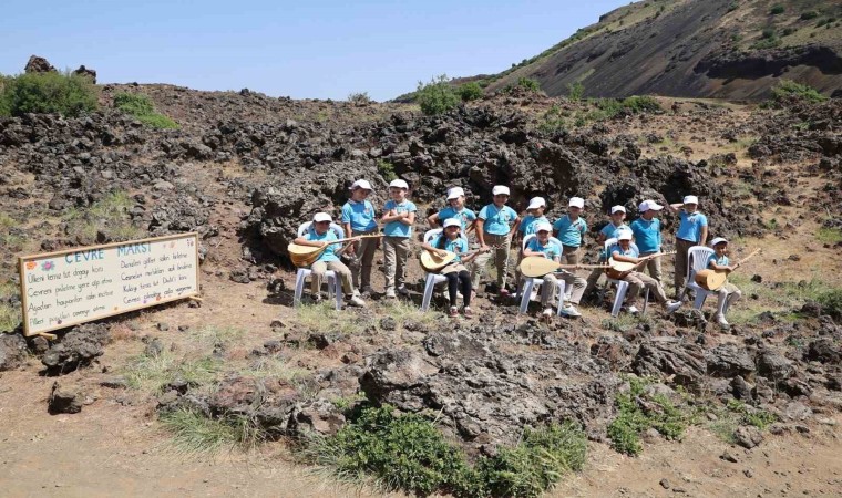 Program sonunda minik öğrenciler ve protokol üyeleri, jeopark alanında çevre temizliği de yaptı.