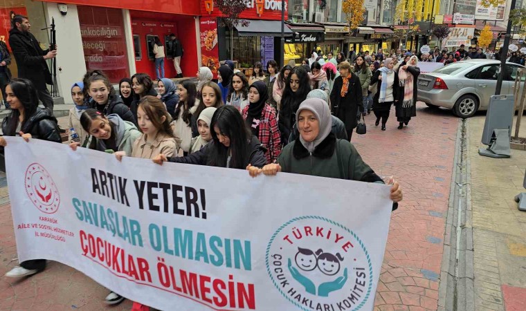 Özbay, “Bizler Türkiye Cumhuriyeti çocukları olarak inancımızdan ve şanlı mazimizden aldığımız güç ve cesaretle, bugün çocukların yaşadığı bu utanç tablosunu asla unutmayacağız. Bütün çocukların hiçbir ayrım gözetmeksizin haklarının tamamını gerçekten kullanmalarını sağlayacak zemini inşa edeceğiz. Bunun için var gücümüzle çalışacağımıza söz veriyoruz. Karabük Çocuk Hakları İl Çocuk Komitesi Temsilcisi olarak sözlerimi burada sonlandırırken dünya üzerindeki tüm çocukların gözlerinin yalnızca sevinçten yaşaracağı bir gelecek temenni ediyorum” dedi.