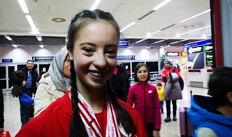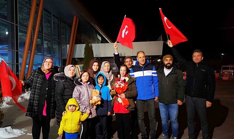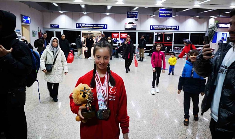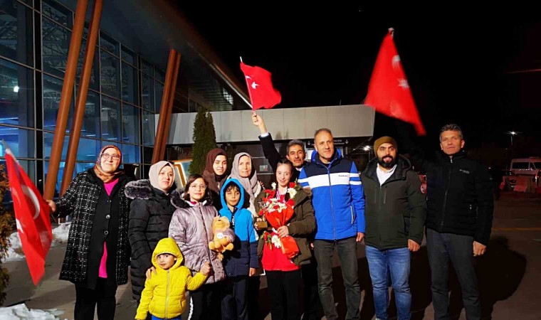 Ankara Akademi Cimnastik kulübü sporcusu Sümeyye Uruk uçaktan indikten sonra havalimanı çıkışında coşkulu bir kalabalık tarafından karşılandı.