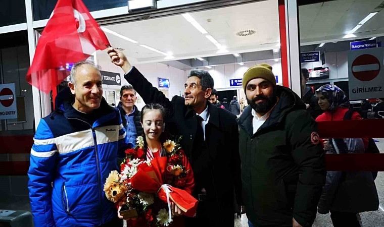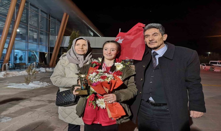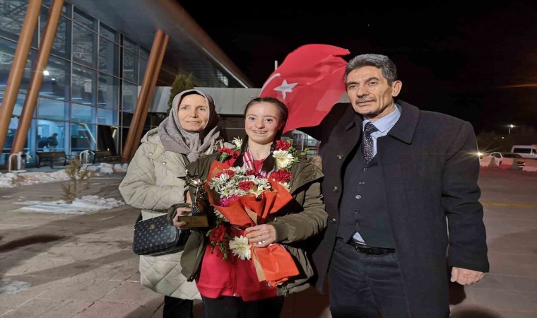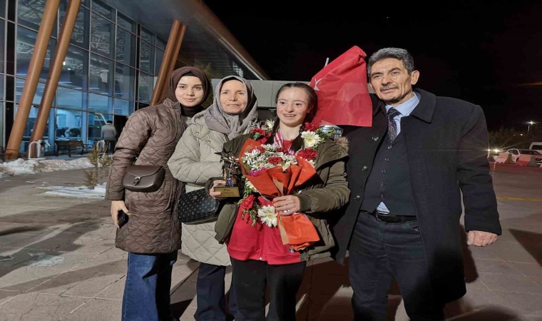 Dünya ikincisi olarak büyük bir başarıya imza atan özel sporcu Sümeyye Uruk, memleketi Erzurum’da büyük bir coşkuyla karşılandı.