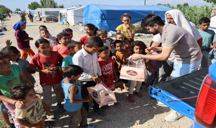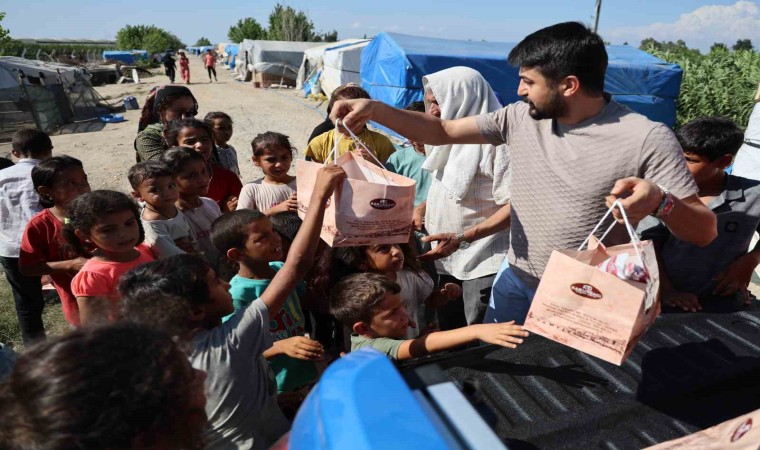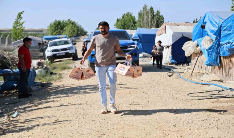 Uğur Aydın, burada yüzlerce tarım işçisi aileye kebap ikram etti. Dağıtım sırasında ise izdiham oluştu. Kebap alan çocukların mutluluğu ise yürekleri ısıttı.