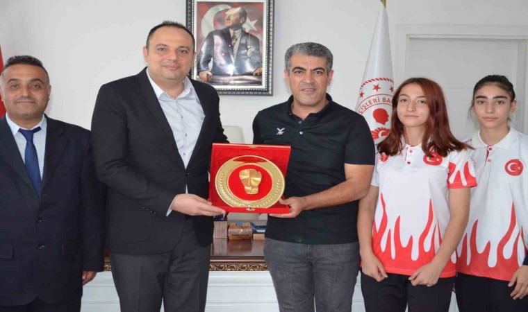 Ziyarette Milli Takım Antrenörü Ömer Uğur tarafından Kaymakam Demir’e plaket takdiminde bulunuldu.